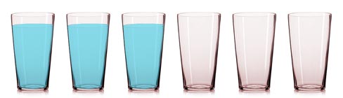 Tienes seis vasos: los tres primeros vasos están con agua, y los tres siguientes, vacíos. ¿Cómo haces para que, moviendo un sólo vaso, quede la línea de vasos alterna? (Un vaso lleno, otro vacío, …) Solución