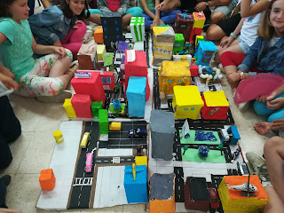 cuando terminamos, unimos las maquetas de cada distrito, explicándole
