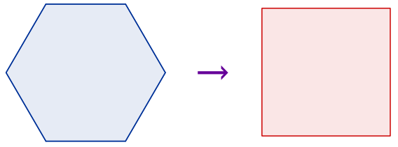 A partir de un hexágono regular cualquiera, construir con regla y compás un cuadrado de igual área que el hexágono.