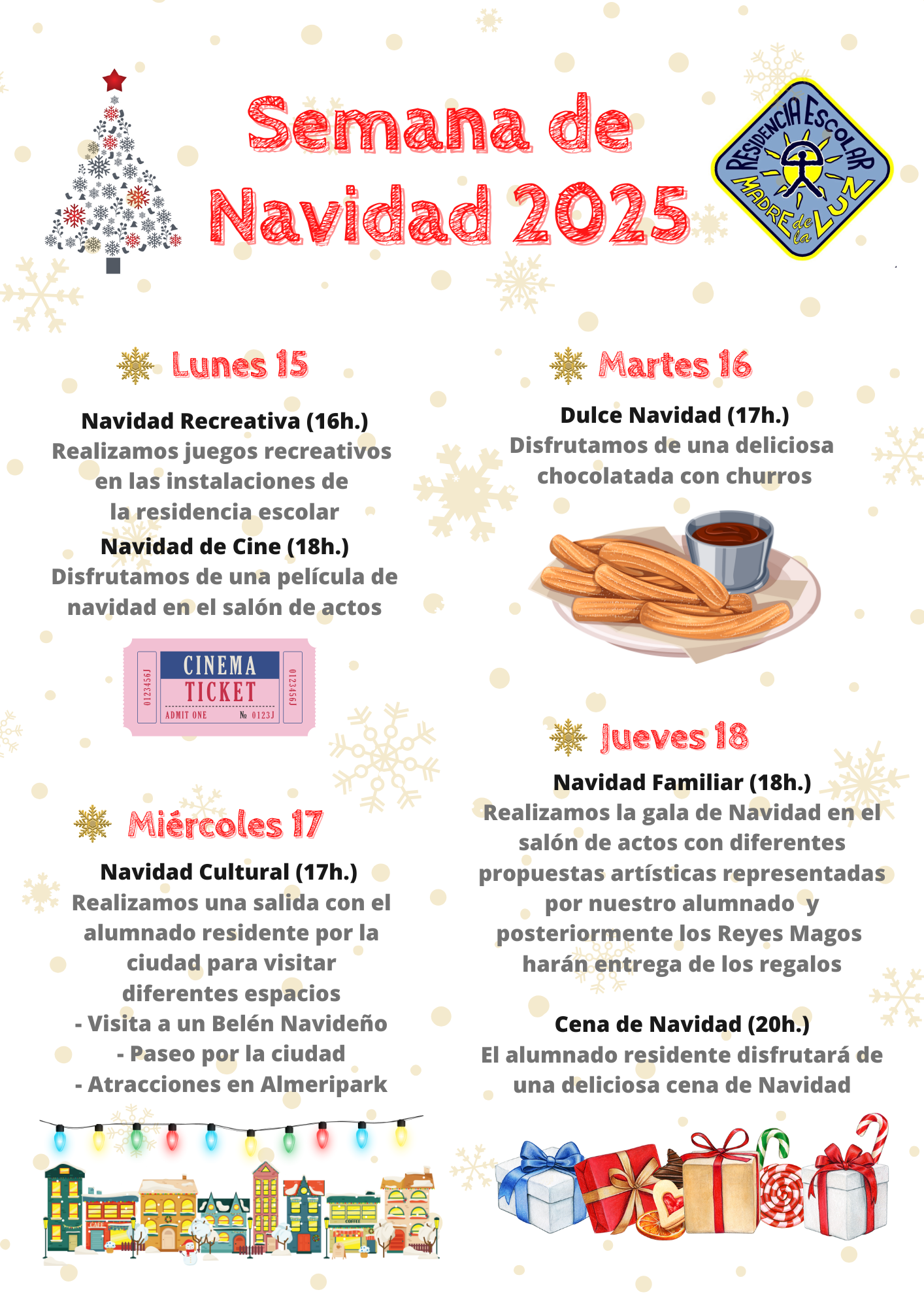 Os presentamos el programa de actividades a celebrar durante la Semana de Navidad del 15 al 19 de diciembre en la Residencia Escolar «Madre de de Luz».