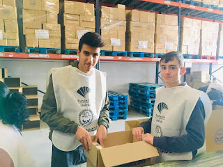 VOLUNTARIADO EN EL BANCO DE ALIMENTOS. Organizado por Esteban Guillen y Mónica Szauka, ayer miércoles un grupo de 20 jóvenes de los distintos ciclos del Departamento de Madera y Mueble del IES LA ROSALEDA, estuvimos colaborando en la clasificación dentro de la Campaña de Recogida de Alimentos de BANCOSOL. Una actividad extraescolar, con un componente social importante que sin duda fue muy gratificante para todos los que participamos en ella, además de Esteban, también acompañamos al grupo Lola Gálvez y Miguel Cardona ambos profesores del IES La Rosaleda. Desde aquí gracias a todos por vuestro esfuerzo.