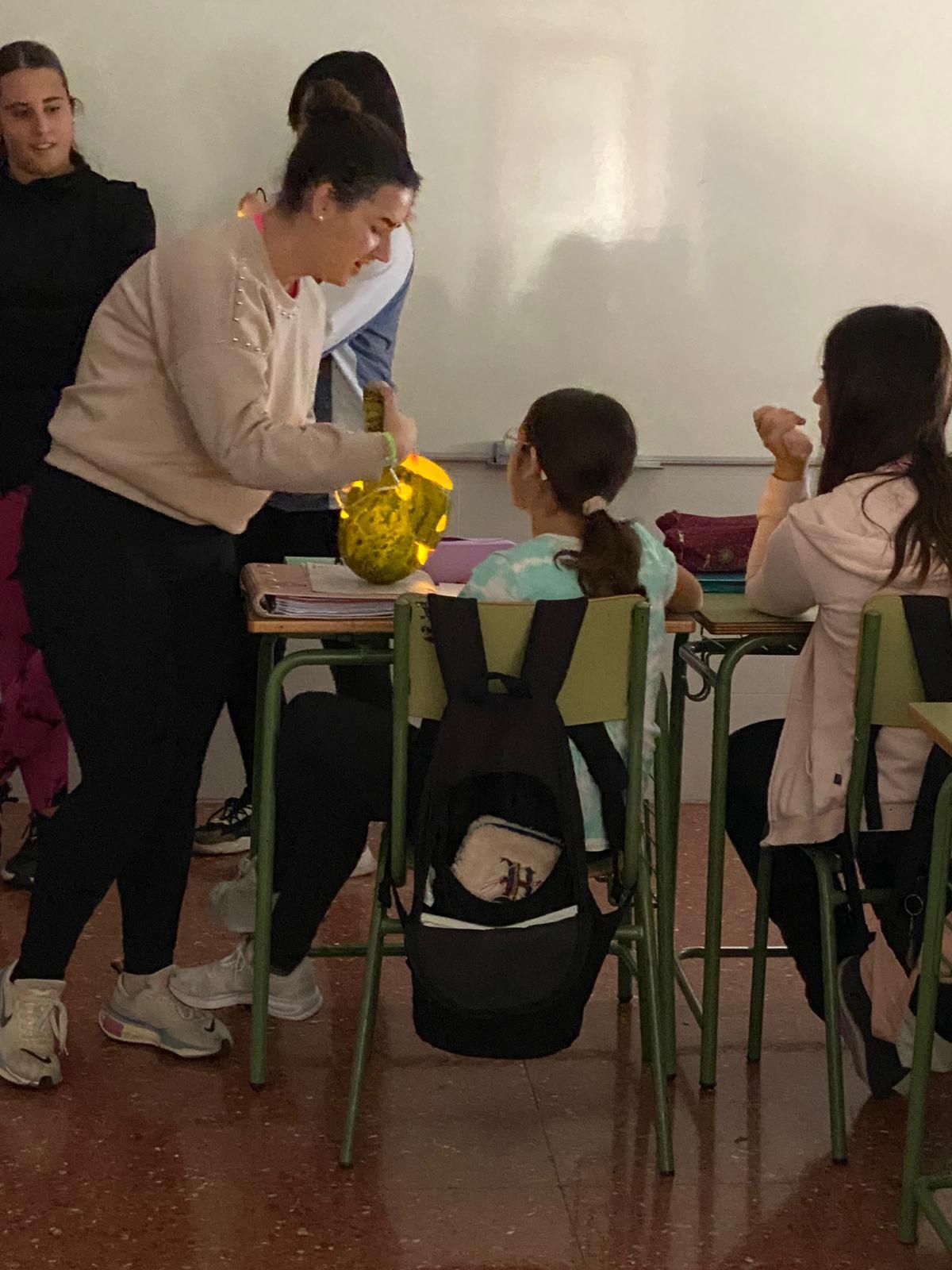 Durante la jornada, nuestros alumnos y alumnas de Patrimonio mostraron esta tradición al alumnado de 1.º de ESO, explicando su origen, su significado y cómo se elaboran estos curiosos “farolillos de melón”. Fue una actividad didáctica, divertida y llena de valor cultural, que permitió conectar generaciones y mantener viva una parte de nuestra memoria popular.