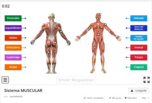 - Músculos esqueléticos: Funcionan junto con los huesos del esqueleto, a los que se unen mediante tendones. Forman aparato locomotor.